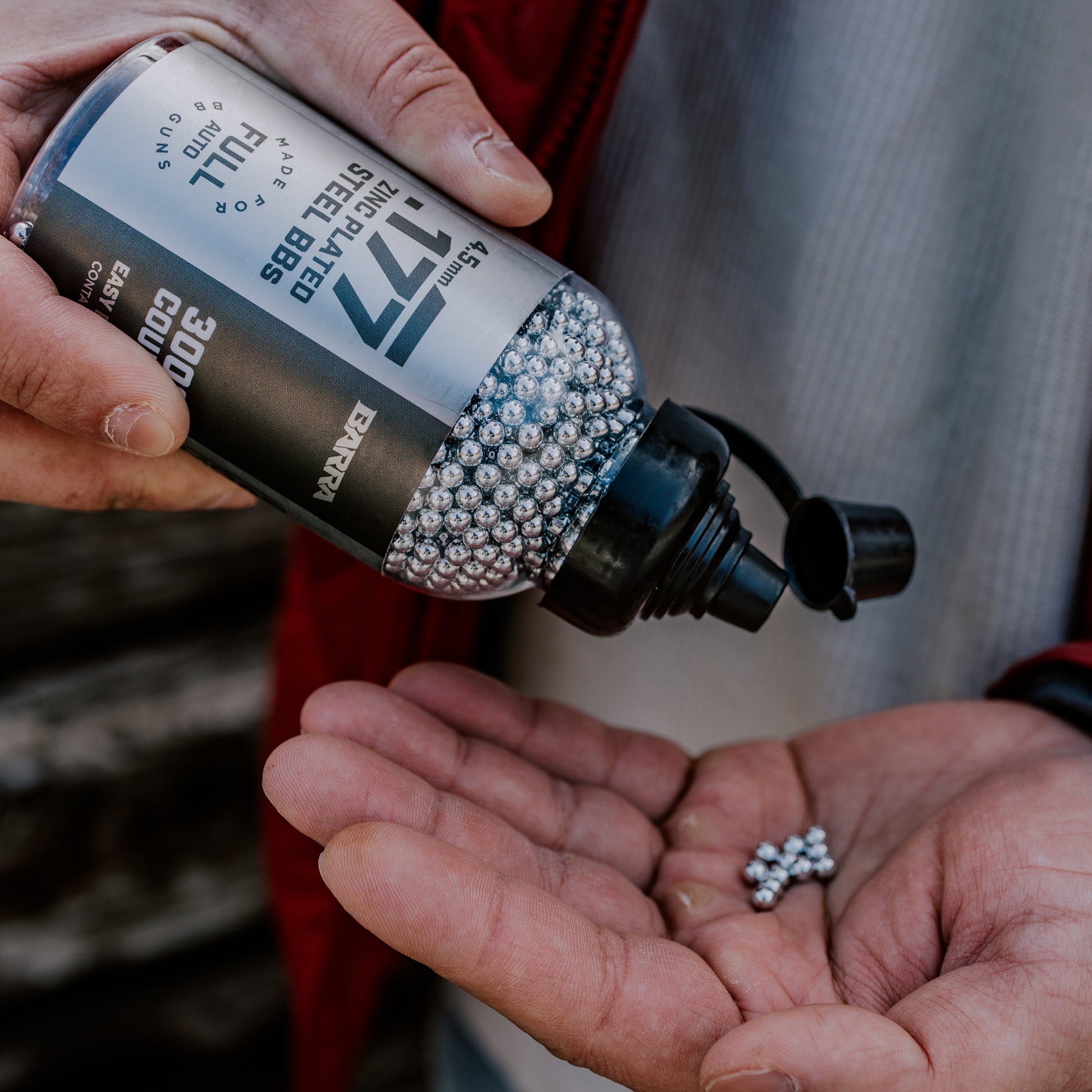 Designed for precision, engineered for performance. Barra Airguns Zinc-Plated Steel BBs have been rigorously tested in a wide range of airguns, across different climates and shooting conditions, ensuring top-tier reliability. While optimized for the 400e full-auto air rifle, these BBs deliver exceptional performance in CO₂, multi-pump, and spring-powered airguns alike.