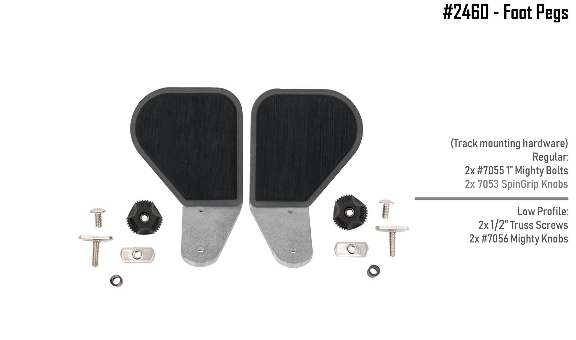 Foot Pegs are a great way to get more power out of your paddle stroke by providing additional bracing points. They easily install in the Deck Tracks on all NuCanoe models so you can place them in the optimum position for you.