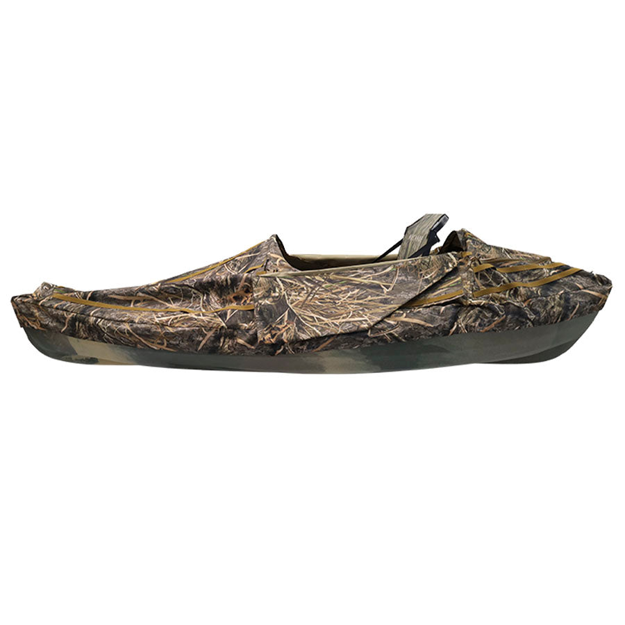The NuCanoe Layout Blind features the Mossy Oak® Shadow Grass Habitat pattern, as well as sewn-in loops on the outside to attach raffia grass for additional camouflage. The Layout Blind has been designed to perfectly fit the F10 NuCanoe kayak. It features openings on both ends to allow for easy access to the bow and transom handles, and two door panels that are attached via belt buckles.