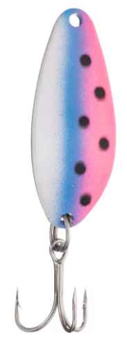 Built to trigger the predatory instincts of fish who bite out of anger, curiosity, and hunger, the Acme Tackle Little Cleo Spoon features a unique hump-backed shape that creates seductive wiggling action on a steady retrieve. For over 50 years the Little Cleo has been taking limit catches of gamefish throughout North America by creating a highly realistic illusion of baitfish acting in an erratic, and confused manner. The unique action and vibration provide universal appeal that explains the Little Cleo's fantastic success as a lure that triggers bites from all gamefish. Available in multiple sizes for accessing all depths of the water column, the Acme Tackle Little Cleo Spoon is fitted with high-quality split rings and a razor-sharp treble hook that’s ready to fish out of the package.