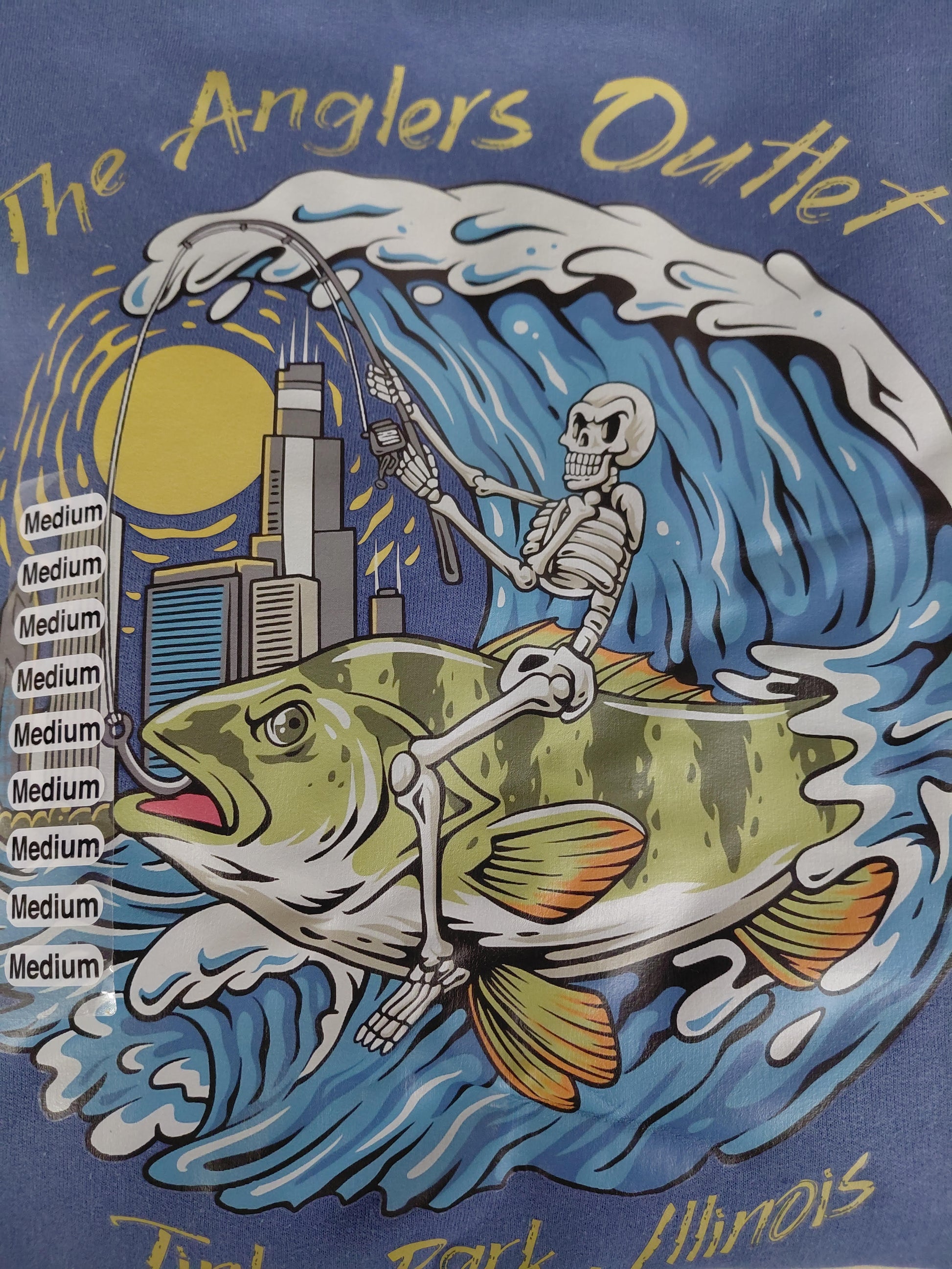 Available in Gray and Black. Anglers Outlet Logo Front and Fishing Mural Back.