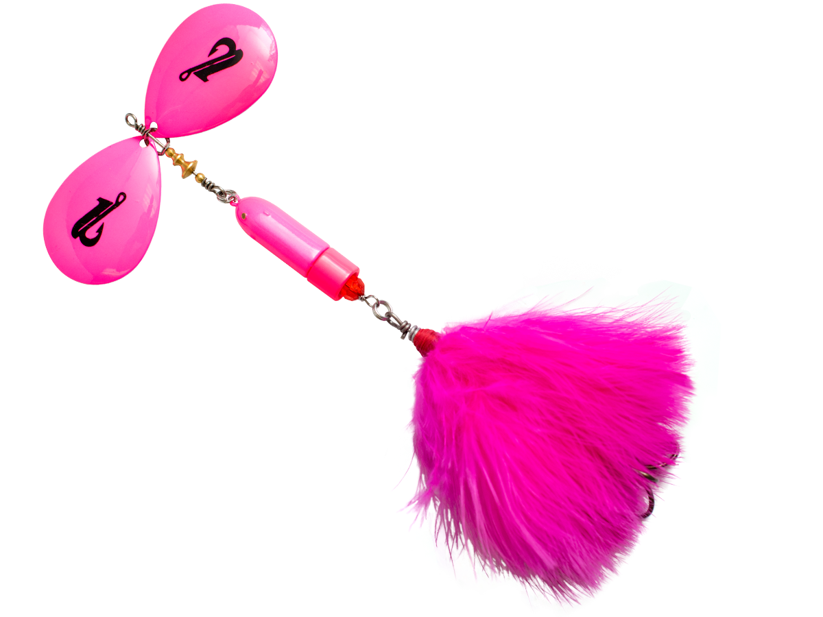Show Musky, Tiger Muskie and Pike who's boss with this Bad Boy Bucktail. This bucktail has the perfect amount of thump and vibration and a unique profile making it the perfect bucktail for targeting tiger muskies, musky and pike. This advanced bucktail design coupled with Livingstons EBS makes this a big fish magnet. This Bad Boy has custom blades that are hand finished and powder coated and custom skirts that make them the perfect size for tiger muskie, musky and pike. Bad Boy Bucktail is simple to use, cast it out and turn the handle and get ready for a strike!