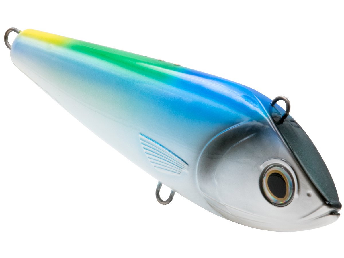 Designed to attract the biggest fish that swim in the biggest offshore waters in the world, the BIG SHOT was engineered to excel at high trolling speeds for wahoo and tuna (but it'll attract everything from Dorado to Yellowtail!). It starts with the Big Shot's ultra-tight action, which holds true whether you're trolling it in the prop wash or off a downrigger. This action is catapulted to the next level with Electronic Baitfish Sounds, which broadcasts the sounds of baitfish (Bonita, etc.) and boosts the Big Shot's attraction radius by up to four times that of traditional trolling lures. The Big Shot is constructed to hold up to big-water abuse, with wire-through construction and heavy-duty components.