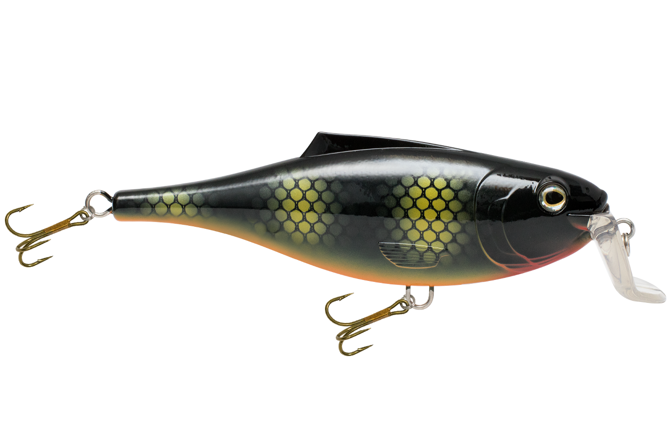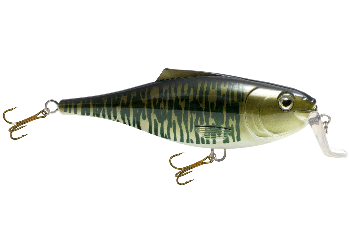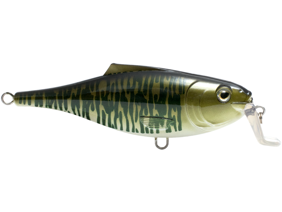 The BULLDOZER gets its name from a unique lip design and action, which combines with its 5 3/4-inch baitfish profile to create one of the most effective shallow divers (4 to 6 feet) ever produced! It's ideal for trolling or casting for northern pike, musky, walleye and striped bass. This lure's tight wobble and kick-out/ darting action are made even more effective with the addition of EBS TechnologyTM. When the Bulldozer hits the water, EBS becomes active, emitting the natural sound of a baitfish. This "Fish Catching Machine" looks and swims like a baitfish and sounds like one too! The Bulldozer is exceptionally versatile. It can be trolled, cranked or twitched for walleye, striped bass, peacock bass and other monster predators of the freshwater world. The Bulldozer is built with solid 2mm line-through construction, and its EBS draws fish from double the distance of traditional lures.