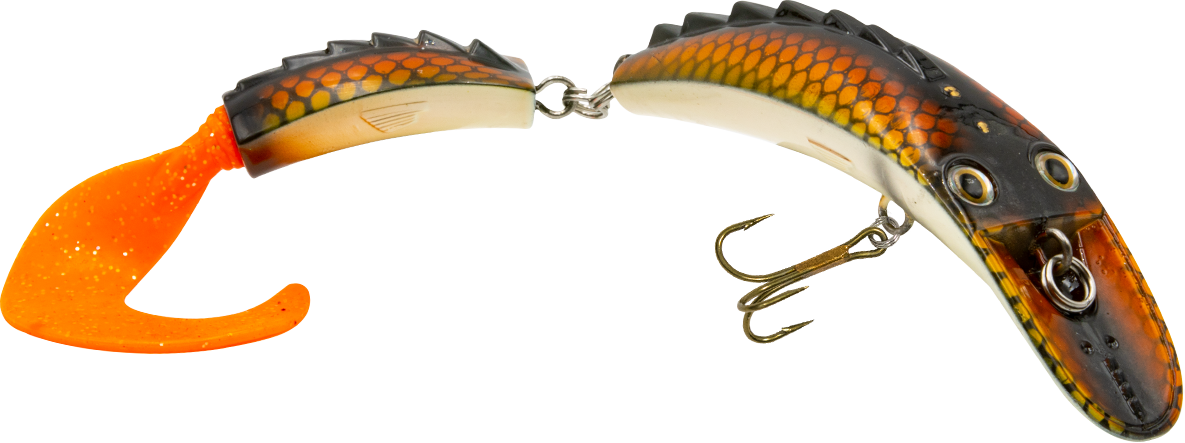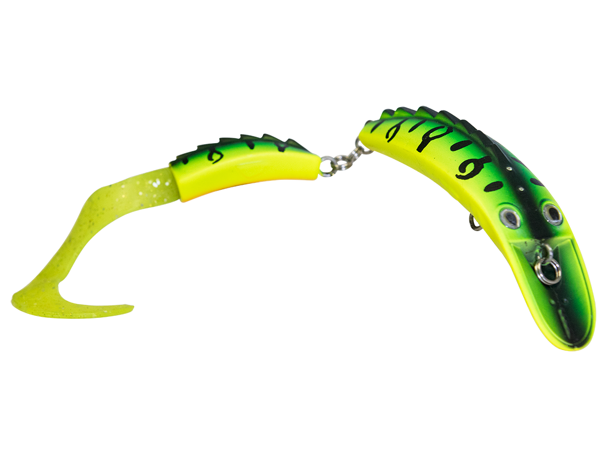 The DIRTY DANCER has the wildest action and vibration a tiger muskie will ever see. The Dirty Dancer's action starts with the dished-out nose and continues through the extended, jointed body, allowing it to vibrate and shimmy aggressively. This creates an erratic enticing action that is tailor made for tiger muskie, pike and true muskie.