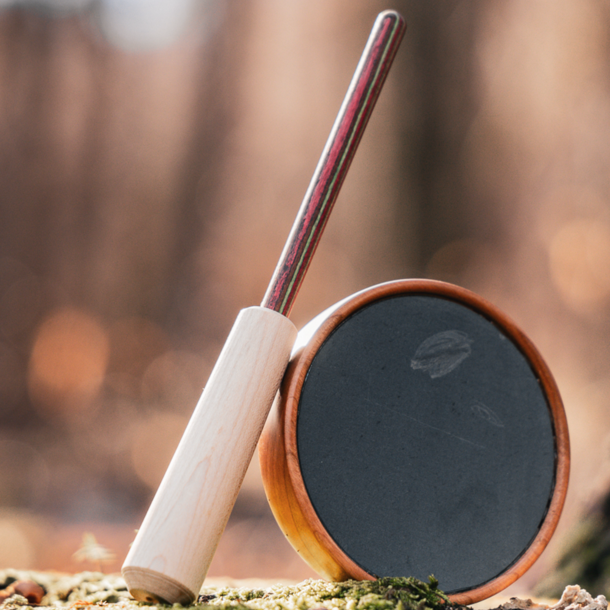 This is a two piece Dymondwood striker with a maple top. Our Dymondwood striker is versatile and sounds great on all of the KLUK pot calls. This is a must have striker for the turkey woods this spring.