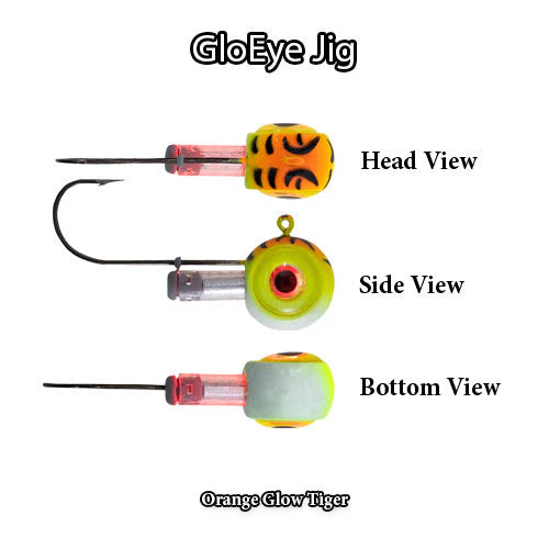 Glass Rattle: Remove the cap on the GloEye and insert the glass rattle into the jig. Replace the cap and you're ready to tip the jig with your favorite bait. Jig the GloEye and watch the sound of the rattle call ‘em home!