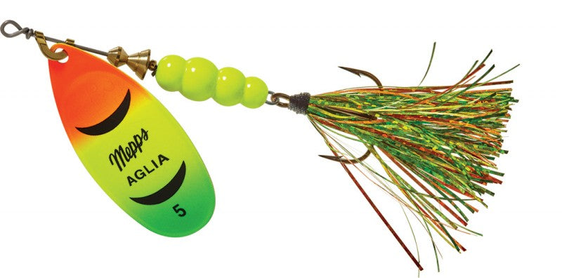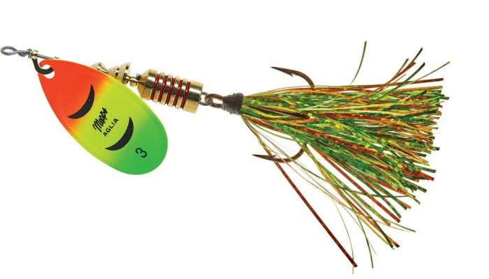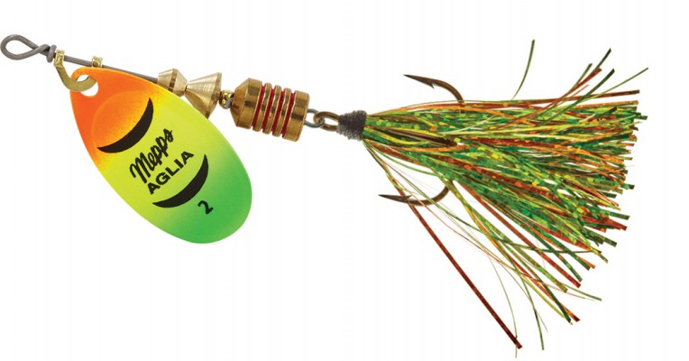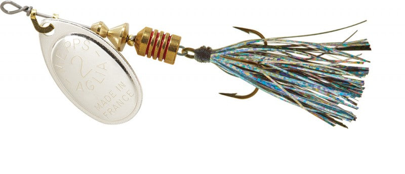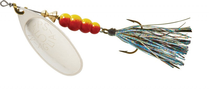 Northern and musky pike will be quick to nail a #5 Aglia® Flashabou in either double or single-blade configurations as it produces exceptional flash over weeds and structure.