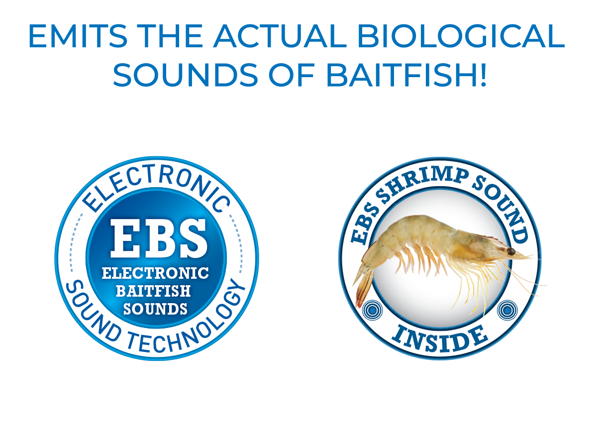 When it comes to perfectly imitating saltwater shrimp, the slow-sinking POBOY 90 is the real deal. Designed to be jerked and twitched with a realistic slow sink, the PoBoy 90 takes the concept of a shrimp imitation one step further. It features EBS Shrimp, the actual biological sounds of shrimp that ALL saltwater fish are programmed to respond to naturally! EBS draws fish from double the distance of traditional lures. This ultra-realistic EBS-powered "Fish Catching Machine" provides the deadliest combination of far-reaching natural shrimp sound and swimming action that no redfish, cobia, snook, snapper, striped bass, etc. can resist. Built with 2mm wire-through construction.