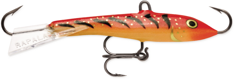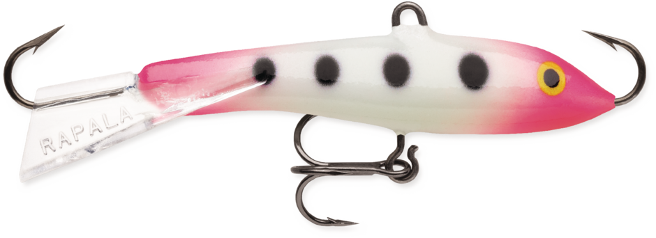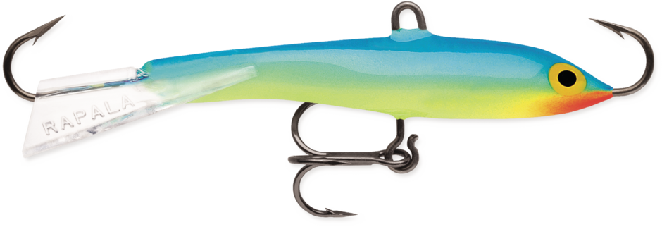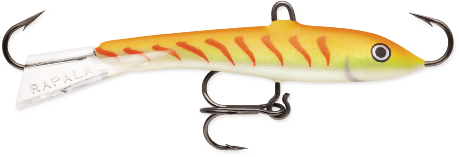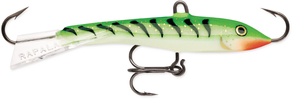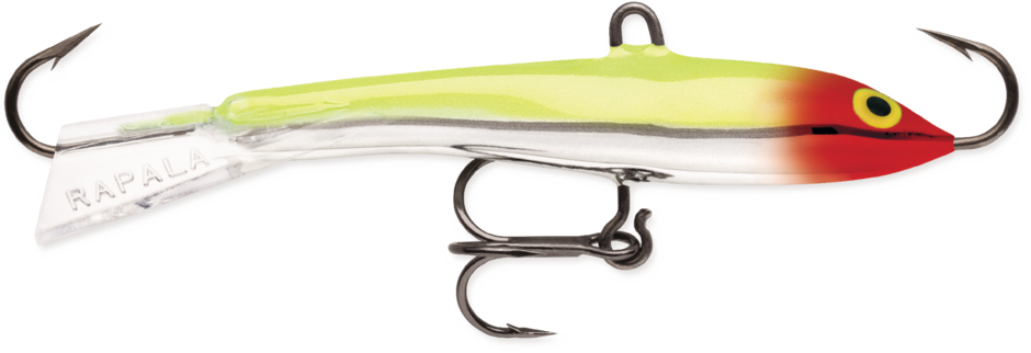 Swimming in tantalizing circles under the ice or in open water for suspended game fish, the Jigging Rap® features a balanced, weighted minnow profile. Single reversed hooks with center treble and eyelet, this bait can also be bottom bounced, yo-yo style off the bottom with unbeatable results. Wide range of sizes is complimented with natural and glow color patterns.