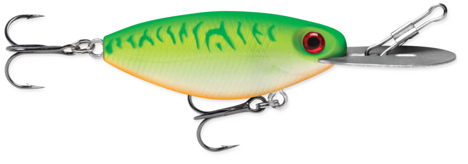 Classic Hot ‘N Tot® searching action and metal lip as the original but loaded with the hottest fish catching innovations. Featuring detailed external scale patterns, classic and UV Bright finish choices, 3-D holographic eyes and VMC® premium black nickel hooks… the fish won’t know what hit ‘em.