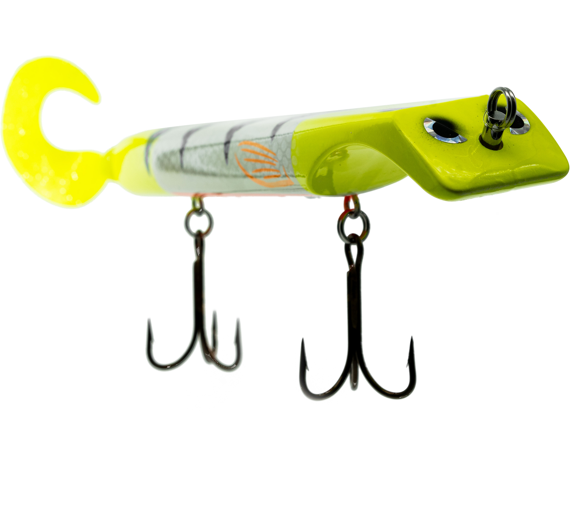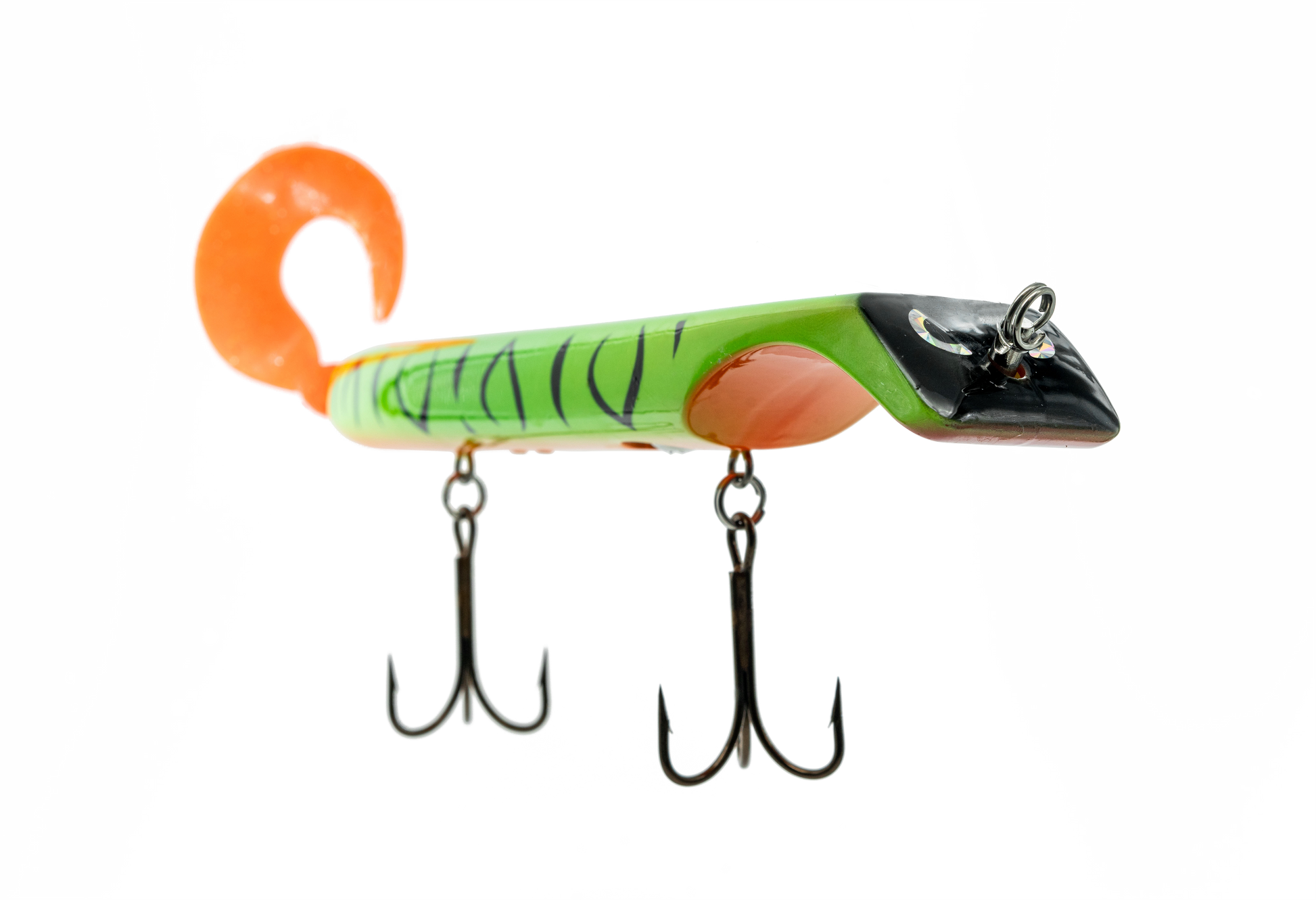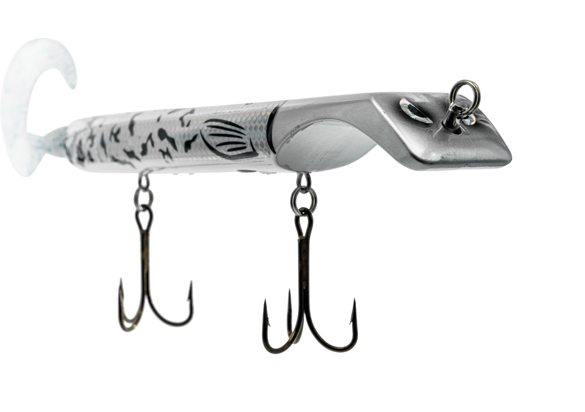 The Titan is a revolutionary lure that makes jerk bait fishing as easy as turning the reel, putting trophy class fish within anyone's reach. Apex predators can't resist the dive and rise action coupled with its wobble on the pause. The Titan is the perfect presentation for Musky, Pike, and other predatory game fish. The Titan's revolutionary design is the brainchild of acclaimed Musky Fishing guide Steven Paul and the Livingston Lures team. Their goal was to design a lure that works without so much WORK, allowing anglers to focus on what's important, putting fish in the net. The Titan can be controlled in a simple reel-pause-stop fashion to achieve the classic jerk bait presentation or operated with rod taps and pulls to make the lure dive and rise in new and exciting ways. The Titan has an easily replaceable corkscrew mounted soft tail and includes an adjustable weight system allowing anglers to fish the titan at any depth or speed depending on conditions.