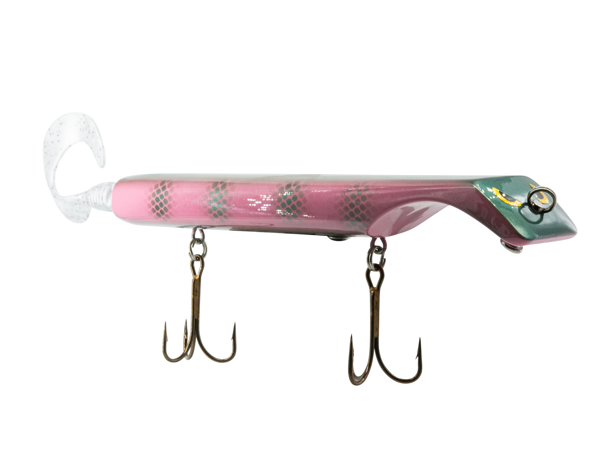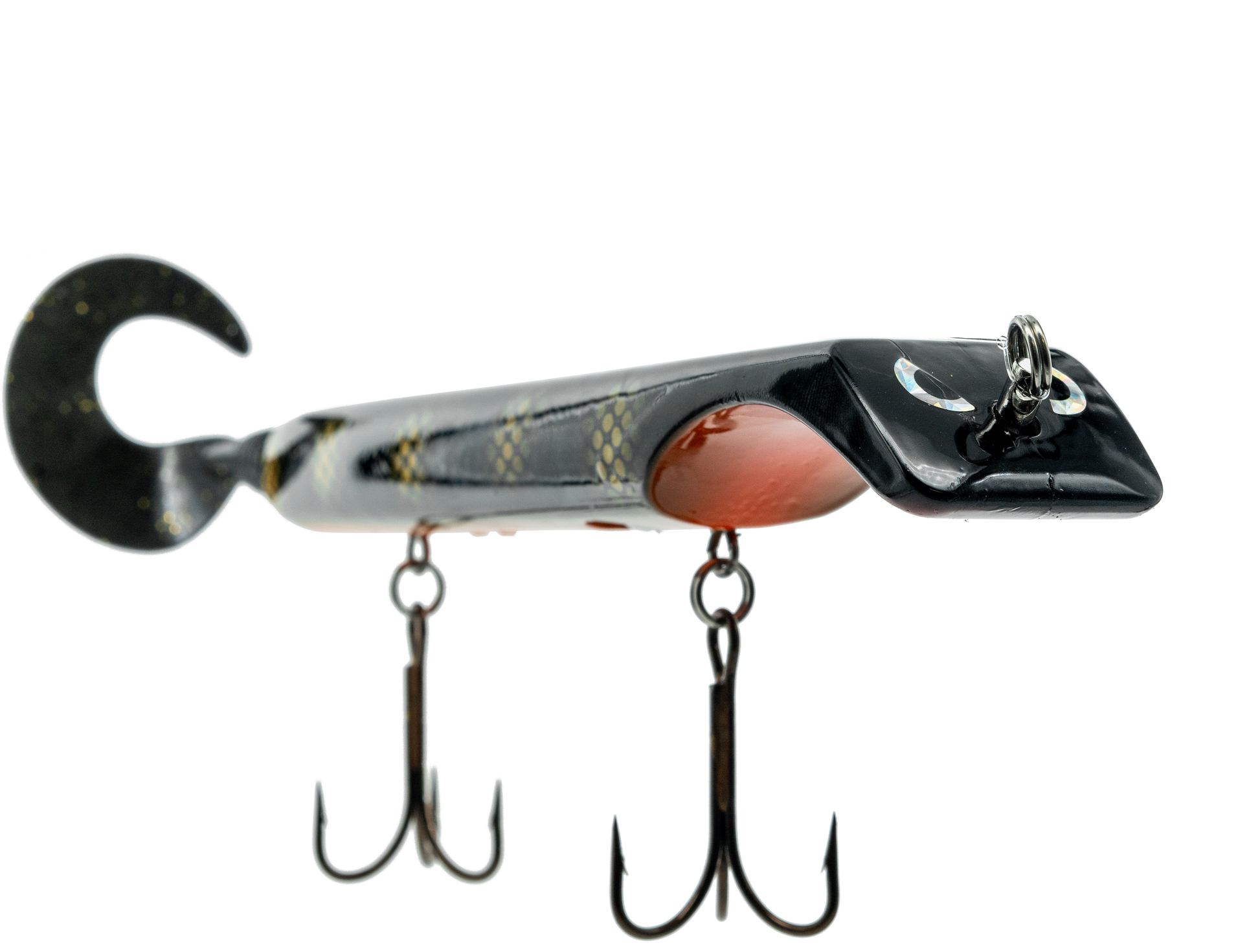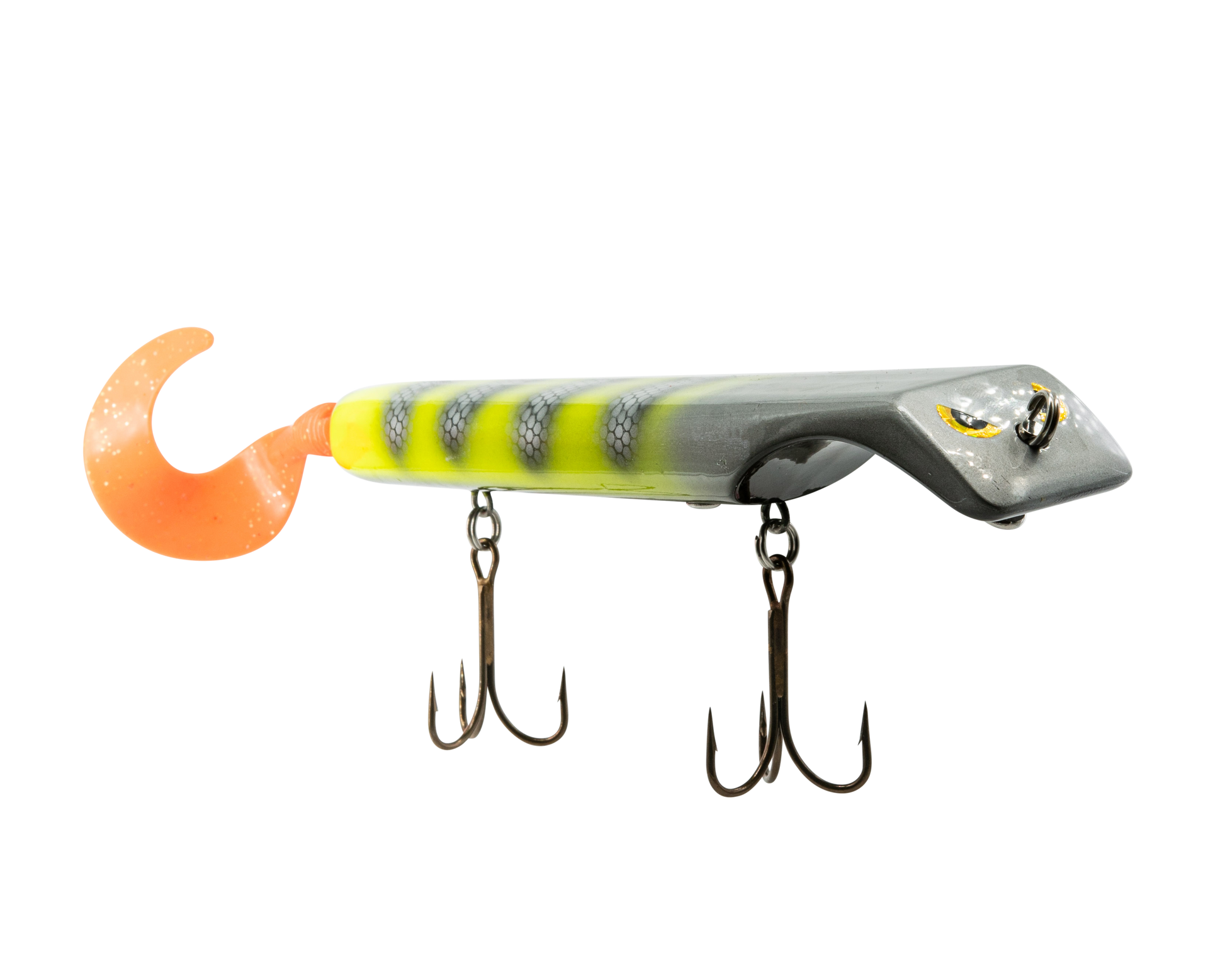 The Titan is a revolutionary lure that makes jerk bait fishing as easy as turning the reel, putting trophy class fish within anyone's reach. Apex predators can't resist the dive and rise action coupled with its wobble on the pause. The Titan is the perfect presentation for Musky, Pike, and other predatory game fish. The Titan's revolutionary design is the brainchild of acclaimed Musky Fishing guide Steven Paul and the Livingston Lures team. Their goal was to design a lure that works without so much WORK, allowing anglers to focus on what's important, putting fish in the net. The Titan can be controlled in a simple reel-pause-stop fashion to achieve the classic jerk bait presentation or operated with rod taps and pulls to make the lure dive and rise in new and exciting ways. The Titan has an easily replaceable corkscrew mounted soft tail and includes an adjustable weight system allowing anglers to fish the titan at any depth or speed depending on conditions.