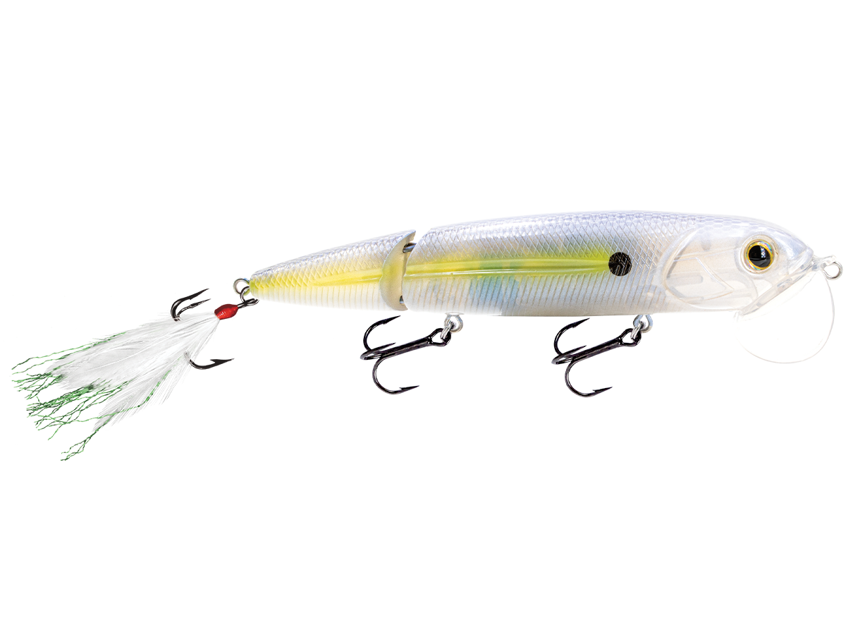 The Walking Boss II is a revolutionary topwater lure that features an exaggerated, oversized, and cupped lip, which creates a uniquely powerful surface disturbance when it's retrieved. It's simple for even the most inexperienced angler to fish. Simply cast and retrieve (either slow or fast) and the unique design of the lip and jointed body create a topwater commotion that drives fish wild. The Walking Boss II's action is combined with the attraction of EBS TechnologyTM to draw fish from double the distance of traditional topwater lures.